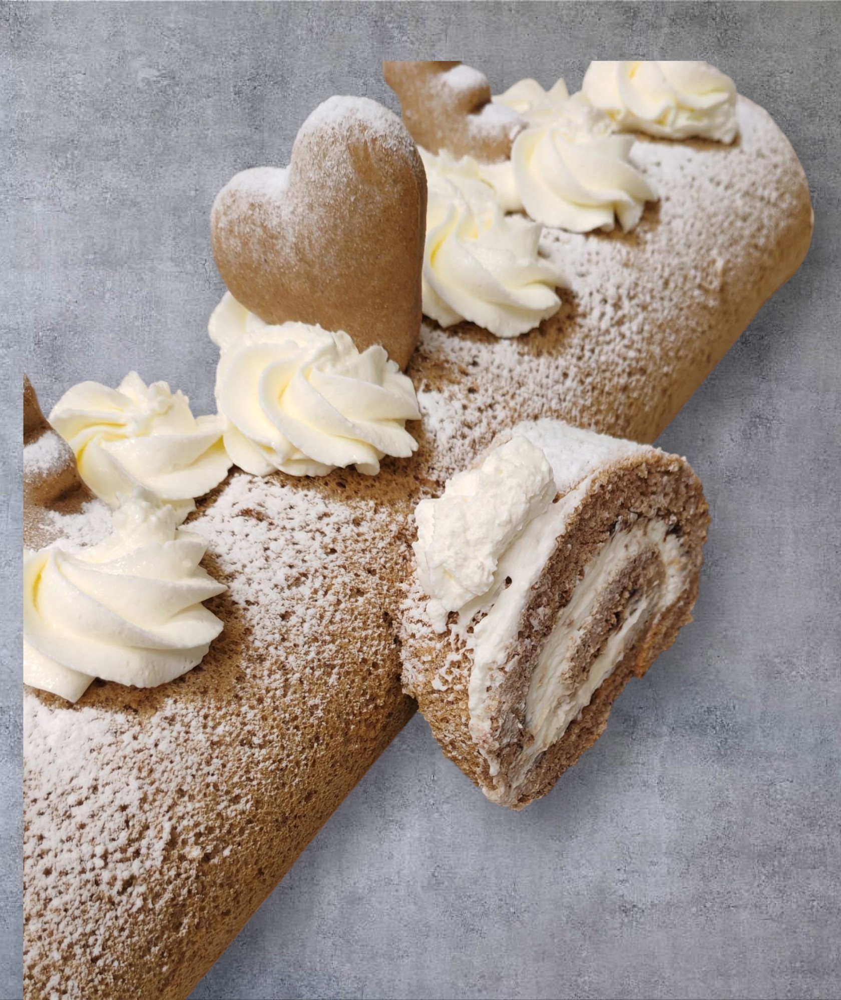 PERNÍKOVÁ ROLÁDA -CELÁ (PERNÍKOVÝ KORPUS, ŠVESTKOVÁ POVIDLA , KRÉM MASCARPONE + SMETANA)